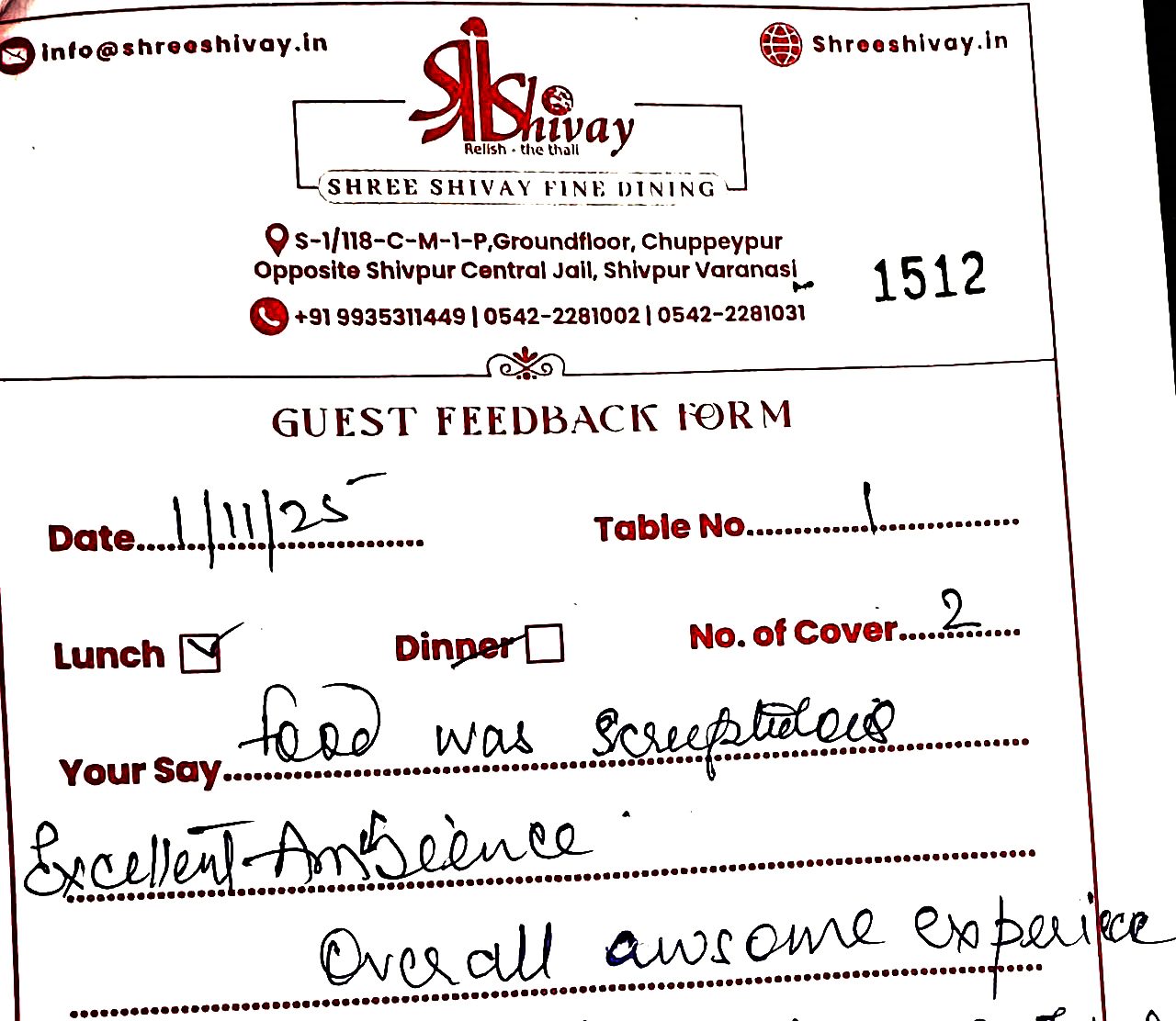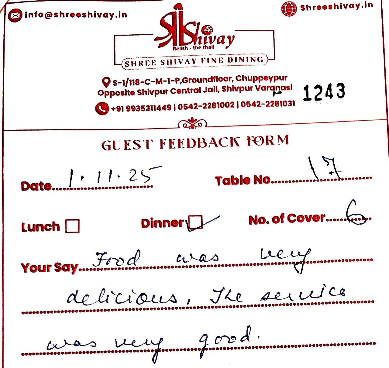 Shree Shivay has been recently AWARDED the most HYGIENIC Restaurant in Varanasi by FSSAI-Ministry of Food and Health, Government of India. Shree Shivay also has become very famous for Organizing Birthday parties, anniversaries, Kitty Parties, Corporate Product Launches, Incentives to Dealers/Employees, Engagements, Corporate Lunch Meetings, Packing Food etc.