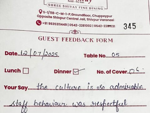 Shree Shivay has been recently AWARDED the most HYGIENIC Restaurant in Varanasi by FSSAI-Ministry of Food and Health, Government of India. Shree Shivay also has become very famous for Organizing Birthday parties, anniversaries, Kitty Parties, Corporate Product Launches, Incentives to Dealers/Employees, Engagements, Corporate Lunch Meetings, Packing Food etc.